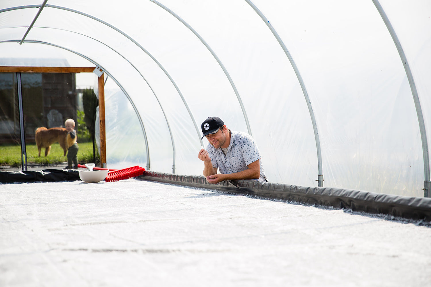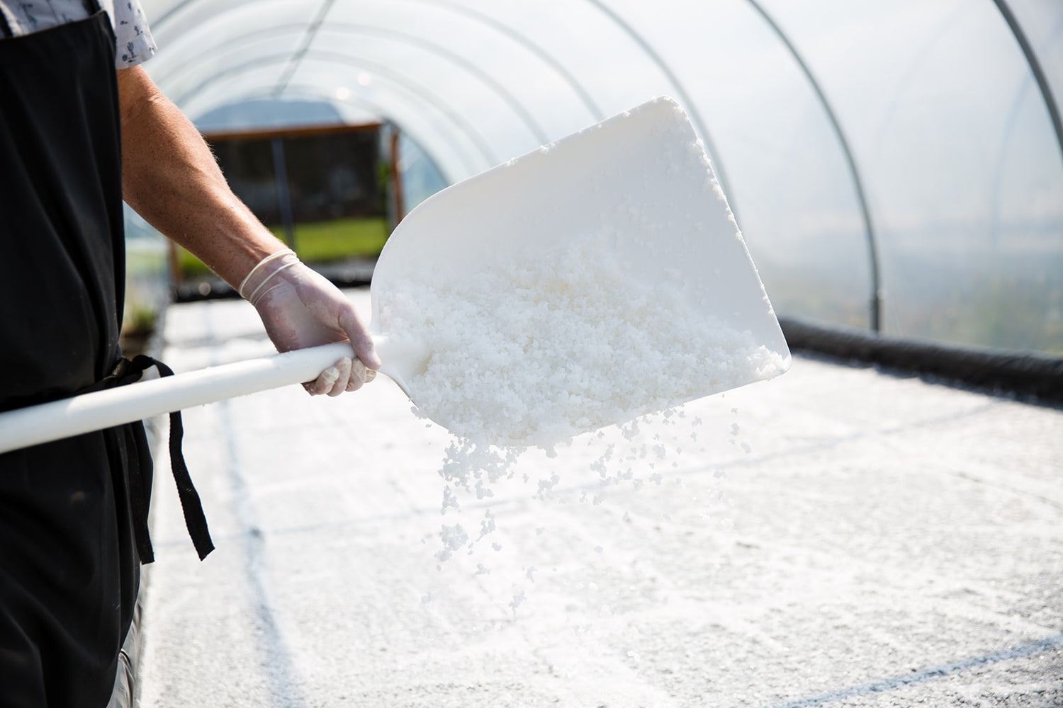 Harvesting is a bear of a job, hauling bucket after bucket of hot wet salt in greenhouses that can be as hot as 130F during the summer. But we love it. Nowadays our Salt Production Manager Ian or his assistant Izak do almost all this grueling work.